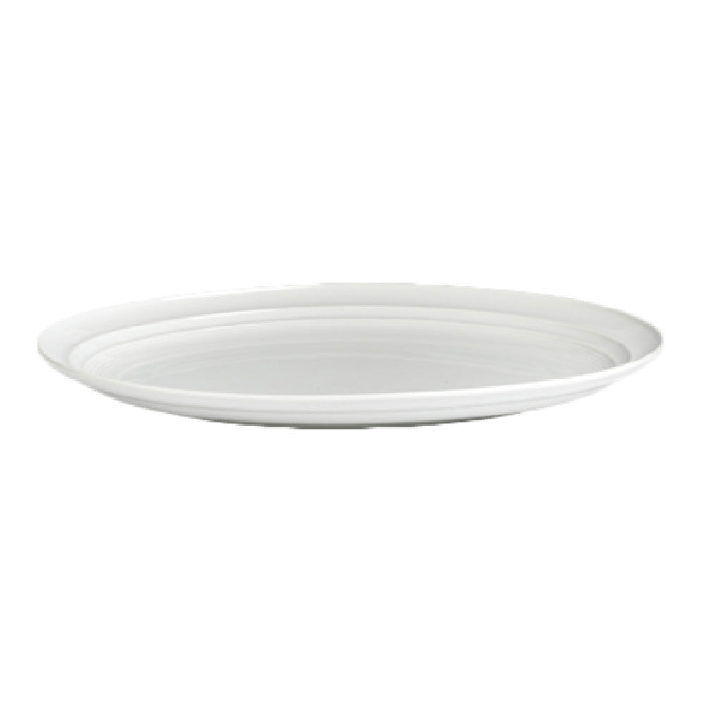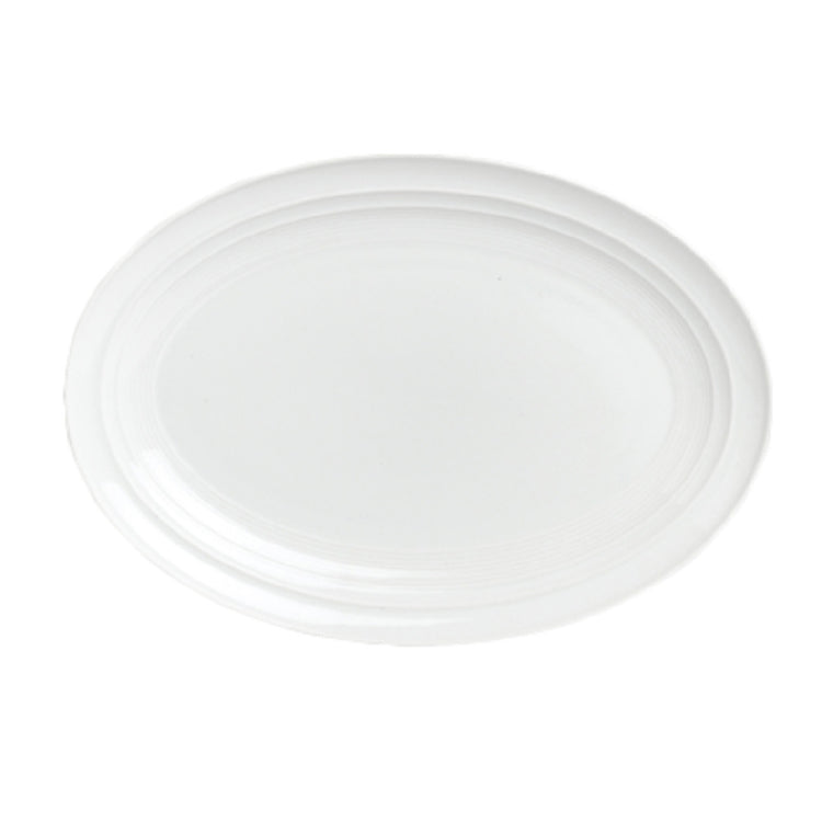 The Steelite 6300P380 Platter 11" Oval is a sophisticated dining piece designed with precision to meet the varied demands of the hospitality industry. This exquisite platter features an 11-inch oval design, offering ample space for presenting culinary creations in an elegant manner. Crafted from high-quality porcelain, it ensures durability and a pristine appearance, ideal for both casual and formal dining settings. The narrow rim of the platter not only enhances the aesthetic appeal but also maximizes the serving area, making it particularly appealing to restaurants and catering services that seek both style and functionality. As part of the Rene Ozorio Aura Asian collection, this platter brings a touch of modern elegance to any table setting, complementing a wide range of dining environments. Each case contains six platters, making it a practical choice for establishments looking to maintain a consistent and cohesive look across their tableware. Perfectly suited for presenting artfully arranged dishes, the Steelite 6300P380 is a stock item, ready to elevate the dining experience with its sleek design and superior craftsmanship. Packed by case, this platter is a versatile choice for chefs and restaurateurs who value both aesthetic appeal and practical utility in their tableware selections.
