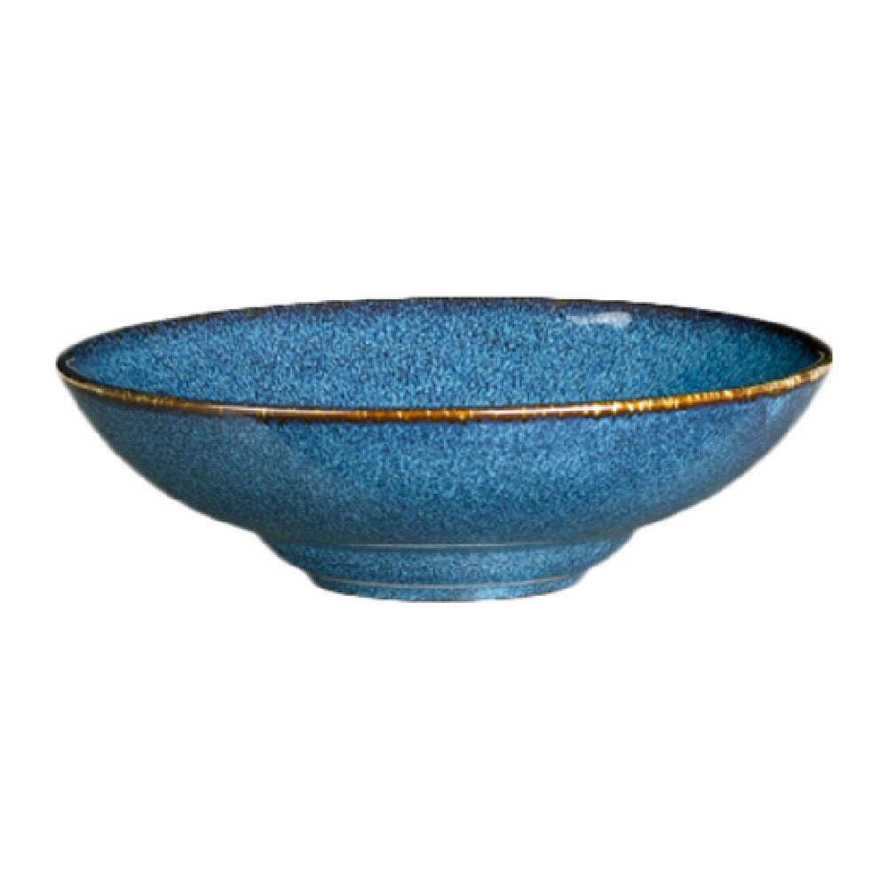 The Steelite 6414MY015 Bowl 52 Oz. (1.625 Qt.) Rim Full (3-3/4 Oz Well) 9-5/8" Dia. X 2-5/8"H is a meticulously crafted porcelain piece designed by Rene Ozorio, part of the esteemed Wabi Sabi Indigo collection. This round coupe bowl features a generous capacity of 52 ounces, equivalent to 1.625 quarts, with a rim full measurement of 3-3/4 ounces. The bowl's dimensions are precisely 9-5/8 inches in diameter and 2-5/8 inches in height, making it a versatile addition to any dining setting. Its coupe shape with a rimmed edge not only enhances its aesthetic appeal but also provides practical benefits for serving various dishes. Packaged in cases of six, this bowl is ideal for hospitality environments seeking to combine elegance with functionality. The Steelite 6414MY015 bowl is a stock item, ensuring consistent availability for high-demand settings such as restaurants and catering services. Its durable porcelain construction ensures longevity and resistance to daily wear, making it a reliable choice for professional use. This bowl is a valuable asset for food service establishments that prioritize both style and utility, catering to diverse market segments within the industry.