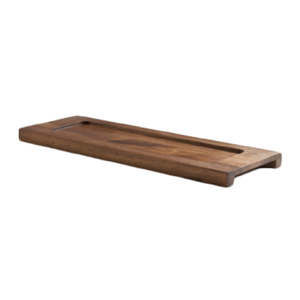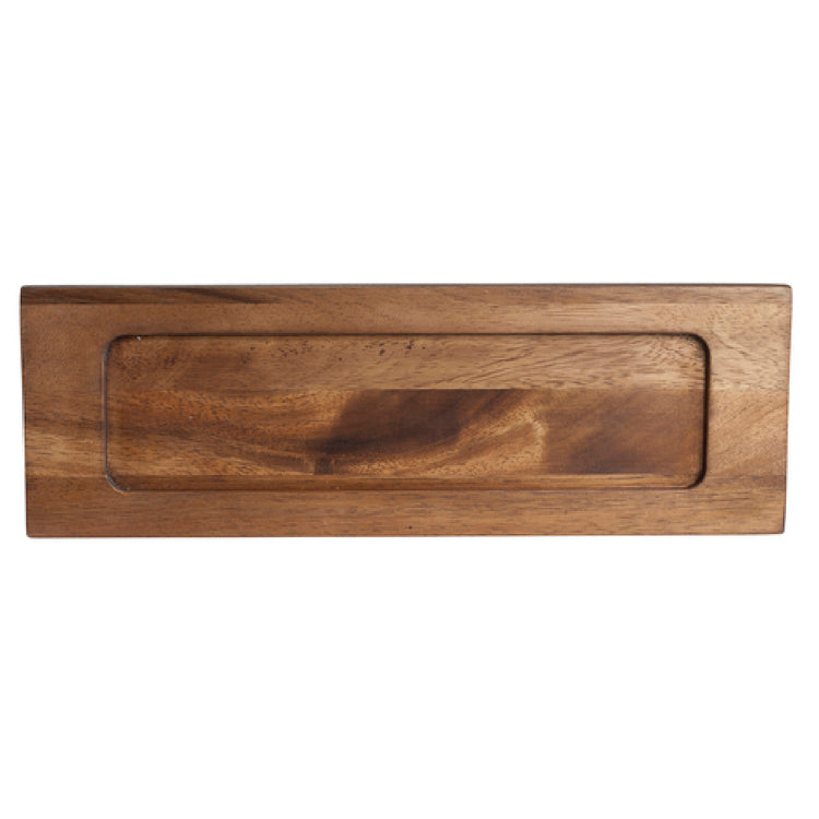 The Steelite 6525T186 Beer Flight Board 13-7/8" X 4-5/8" With Long Well (10-7/8" X 3") Rectangular is an expertly crafted product designed to enhance the presentation and sampling experience in tasting rooms, breweries, and bars. This beer flight board, measuring precisely 13-7/8 inches in length and 4-5/8 inches in width, provides an ideal platform for serving a variety of beer samples. Its defining feature is the long well, measuring 10-7/8 inches by 3 inches, which accommodates an array of glassware securely, ensuring stability during service. Constructed from high-quality wood, part of the Creations Wood collection, this board offers a robust and aesthetically pleasing option for beer enthusiasts and professionals alike. As a stock item, it is conveniently packed by the dozen, providing an efficient solution for businesses seeking to optimize their serving capabilities. This beer flight board is thoughtfully designed to cater to the dynamic needs of the hospitality industry, presenting a seamless blend of functionality and style. Its rectangular shape and durable construction make it a versatile choice for a wide range of settings, enhancing the beer-tasting experience while adding a touch of elegance to the presentation.