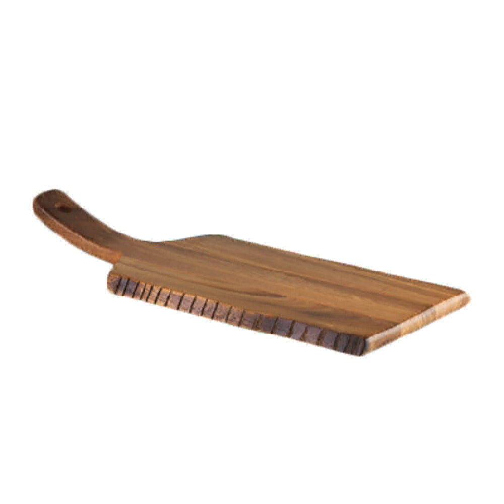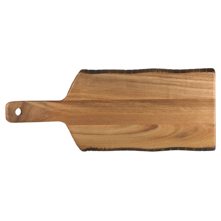 The Steelite 6525TW305 Serving Board is a versatile and elegantly designed culinary accessory, measuring 16 inches in length and 6-1/2 inches in width. This rectangular serving board is crafted from acacia wood, adding a rustic and natural aesthetic to any dining or serving environment. The board's distinctive rustic edge enhances its visual appeal, making it an exceptional choice for presenting a variety of dishes. Perfectly suited for the hospitality industry, it provides a unique value proposition by offering both functionality and style. The Steelite 6525TW305 is part of the Creations Wood collection, emphasizing its premium quality and design. With a stock item status and packed by case, it is available in quantities of six per case, ensuring ample availability for large-scale operations or events. This serving board meets the needs of diverse market segments, from upscale restaurants to catering services, by blending durability with an attractive presentation platform. Its acacia construction promises longevity while maintaining an environmentally conscious choice for sustainable kitchenware. The Steelite 6525TW305 Serving Board's combination of size, material, and design makes it an invaluable asset for those who prioritize both aesthetic presentation and practicality in their food service operations.