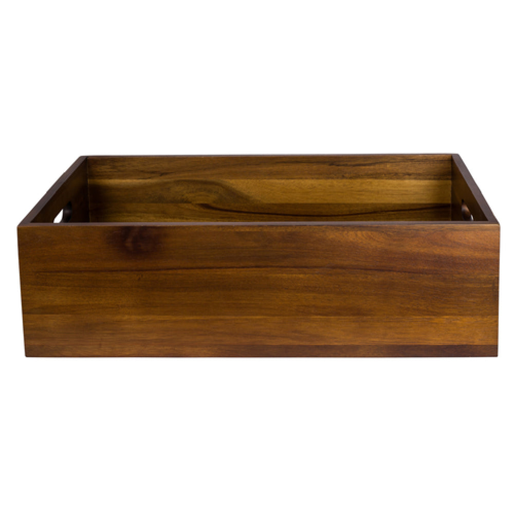 The Steelite 6525TW312 Crate/Platform is a versatile 1/1-size GN unit, measuring 20-3/4"L x 12-7/8"W x 6"H, designed to meet diverse industry needs with its innovative features. Crafted from high-quality acacia wood, this rectangular platform stands out for its durability and aesthetic appeal. The reversible design adds to its adaptability, allowing it to serve multiple purposes in various settings. Identified by model number ST50153A, this product forms part of the Creations Wood collection, showcasing Steelite International's commitment to quality and style. Ideal for use in catering, hospitality, and food service industries, this crate/platform is a stock item, ensuring reliable availability. Its generous dimensions provide ample space for storage or display, making it a practical choice for professionals seeking both functionality and elegance. Whether used in upscale dining environments or bustling commercial kitchens, the Steelite 6525TW312 is tailored to enhance operational efficiency while maintaining a sophisticated presentation. Packed individually, it ensures convenience and ease of handling for end-users. This product exemplifies a blend of tradition and innovation, catering to the evolving demands of the modern industry landscape.
