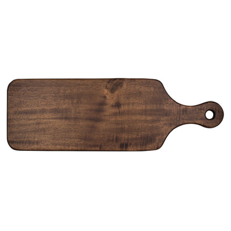 The Steelite 6525TW315 Serving Board is an 18" x 6" rectangular board crafted from high-quality acacia wood, known for its durability and rich, warm hues. Featuring a convenient handle, this serving board is part of the Creations Wood collection, making it a versatile choice for both professional chefs and home entertainers. Its sleek, elongated design is perfect for presenting an array of culinary delights, from artisanal cheeses to charcuterie arrangements, adding a touch of elegance to any table setting. As a stock item, it is readily available and is packed by the dozen, catering to high-volume needs of restaurants and hospitality businesses. The acacia wood construction not only provides an aesthetically pleasing look but also ensures longevity and resistance to wear, making it an invaluable asset for any food service operation. Its practical dimensions allow for easy handling and storage, making it suitable for various settings and occasions. The Steelite 6525TW315 Serving Board stands out as a durable and stylish option, meeting the diverse needs of different market segments within the hospitality and culinary industries.
