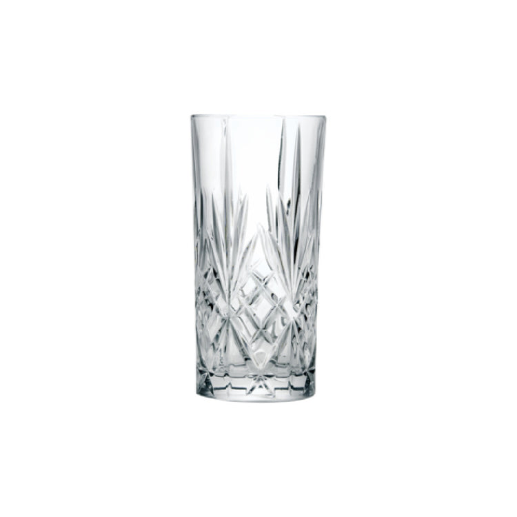 The Steelite 670RCR352 Highball Glass 12.0 Oz. (H 6" M 2-3/4" T 2-3/4" B 2-1/2") EcoCrystal is a meticulously crafted crystalline glassware piece, embodying the elegance and durability synonymous with Steelite International's renowned quality. Standing at a height of 6 inches with a maximum and top diameter of 2-3/4 inches and a base diameter of 2-1/2 inches, this highball glass is designed for stability and ease of use, making it an ideal choice for both professional and home use. With a capacity of 12.0 ounces, it is perfect for serving a variety of beverages, from cocktails to soft drinks, catering to diverse customer needs within the hospitality and culinary industry. The EcoCrystal feature highlights its environmentally conscious design, appealing to eco-friendly businesses and consumers. Manufactured by RCR Crystal, the clear, crystalline finish of the Melodia collection ensures a sophisticated presentation in any setting. This product is a stock item, conveniently packed by the dozen, which makes it a practical and accessible option for high-volume service establishments. The Steelite 670RCR352 Highball Glass combines aesthetic appeal with functional excellence, making it a versatile addition to any glassware collection.