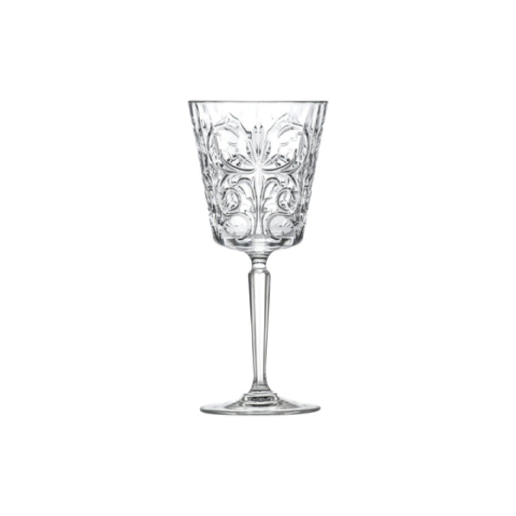 The Steelite 676RCR377 Wine Goblet Glass 9.75 Oz. is a meticulously crafted glassware piece designed to enhance the wine-tasting experience. With a height of 7-5/8 inches, a middle diameter of 3-1/2 inches, a top opening of 3-1/2 inches, and a base diameter of 3 inches, its dimensions offer a sophisticated and balanced presence. Made from EcoCrystal, this wine goblet stands out in the crystalline category, showcasing the clarity and brilliance of RCR Crystal. The glass is clear, allowing the true colors of the wine to be appreciated, which is essential for sommeliers, wine enthusiasts, and hospitality professionals. This product is also part of the Tattoo collection, distinguished by its unique design elements, making it suitable for upscale dining environments. Packed by the dozen, it serves as a practical choice for restaurants, event venues, and caterers requiring both elegance and functionality. The Steelite 676RCR377 Wine Goblet is a stock item, ensuring reliable availability for continuous use in high-demand settings. Its refined design and durable material highlight its value as an exquisite addition to any wine service set, meeting the aesthetic and practical demands of the food and beverage industry.