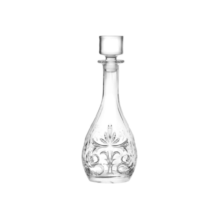The Steelite 676RCR383 Decanter Glass 32.0 Oz. (H 12-1/2" M 5" T 2" B 3-1/4") EcoCrystal is a premium decanter glass designed for both elegance and functionality. With a substantial volume of 32.0 ounces, this decanter is well-suited for serving a variety of beverages, from fine wines to spirits, catering to the needs of upscale restaurants, bars, and personal collectors. Crafted from EcoCrystal, a clear and durable crystalline material, it offers a pristine presentation and robustness, reinforcing its value in high-traffic service environments. This product, produced by RCR Crystal and featuring the Tattoo design, adds an artistic touch to its visual appeal. Measuring 12-1/2 inches in height, 5 inches in maximum diameter, 2 inches at the top, and 3-1/4 inches at the base, the decanter’s proportions are engineered for a perfect pour and balanced handling. Available as a stock item, each case contains four decanters, making it a practical solution for establishments needing to maintain a consistent and refined beverage service. The Steelite 676RCR383 Decanter Glass embodies a marriage of aesthetic and utility, rendering it an ideal choice for professional and personal settings that value both style and performance.