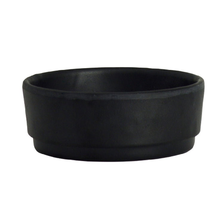 The Steelite 7181TM511 Dish is a meticulously crafted serving piece, designed to hold 2 oz. of contents, making it an essential item for various dining settings. With precise dimensions of 2-7/8 inches in diameter and 1-1/4 inches in height, this round dish is a compact yet functional addition to any tableware collection. Constructed from durable melamine, it combines strength with a sleek appearance, ensuring longevity and resistance to everyday wear and tear. The dish is part of Steelite's Creations line, specifically the Cali collection, and comes in an elegant black finish that adds a touch of sophistication to any dining environment. This product is a stock item, facilitating ease of replenishment for establishments looking to maintain consistency in their table settings. Packed by 2 dozen per case, it is an efficient choice for high-volume users, such as restaurants, hotels, and catering businesses, offering a practical solution for managing inventory and cost. The Steelite 7181TM511 Dish is designed to meet the needs of the food service industry, providing a balance of aesthetic appeal and practical functionality, making it a versatile option for serving sauces, condiments, and small appetizers. With its durable construction and stylish design, this dish caters to a wide range of market segments.