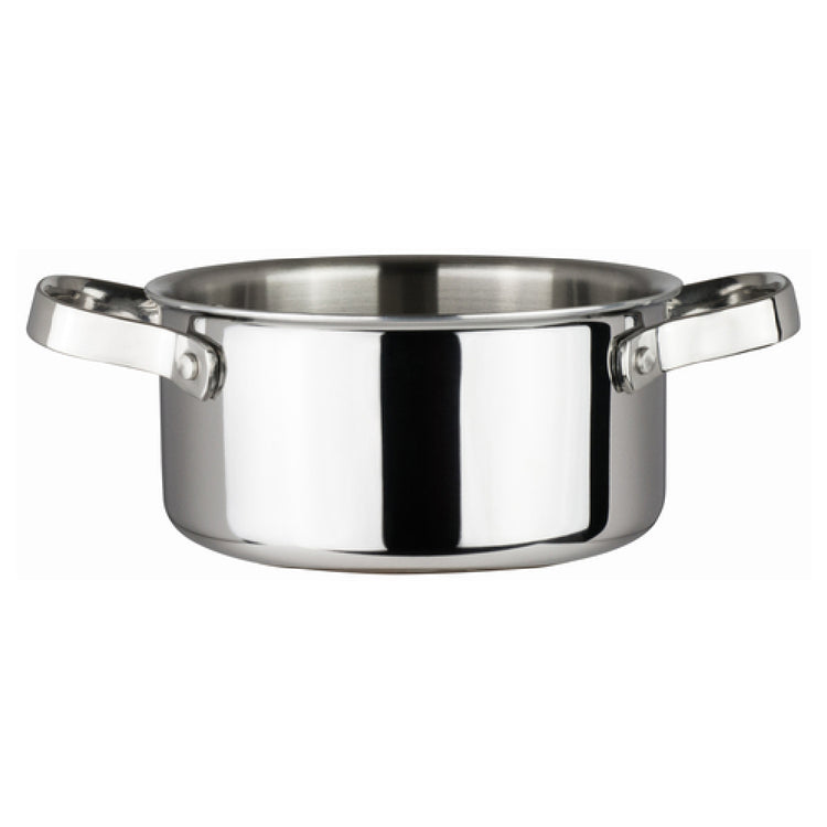 The Steelite 7347MW120 Pot is a versatile kitchen essential, offering a generous volume of 51.2 oz (1.6 qt.), suitable for various culinary applications. Measuring 9-1/2 inches in length, 6-3/4 inches in width, and 2-7/8 inches in height, this small, round stainless steel pot is expertly designed for both form and function. Its robust construction from high-quality stainless steel ensures lasting durability and a sleek, modern appearance that complements any kitchen setting. The pot features convenient handles, making it easy to transport and maneuver, enhancing safety and efficiency in busy kitchen environments. As part of the Creations series by Steelite International, this pot embodies a commitment to quality and innovation, meeting the demands of both professional chefs and home cooks alike. It is available as a stock item, packed by the dozen, making it an ideal choice for large-scale operations requiring reliability and consistency. Whether used in upscale restaurants, catering services, or home kitchens, the Steelite 7347MW120 Pot provides a practical and stylish solution for a wide range of cooking needs.