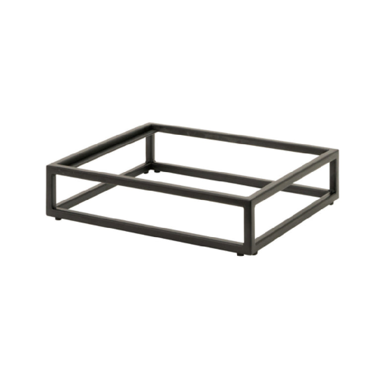 The Steelite 7363MW336 Riser is a meticulously crafted product measuring 11-1/2 inches by 13-7/8 inches by 3 inches, designed in a distinctive rectangular shape. This pivot black riser is a unique addition to Steelite International's line-up, under the renowned DW Haber collection. Made of durable metal, this riser is designed to provide both functional support and an aesthetically pleasing presentation surface. The Steelite 7363MW336 is ideal for various industry segments, including hospitality and catering, where display and presentation are key. Its robust construction ensures that it can withstand frequent use in high-demand environments, while its unique design adds a touch of elegance to any setting. Packaged individually with a minimum case quantity of one per case, it is a stock item, ensuring readily available supply for professional kitchens and event planners. Its precise dimensions make it versatile for a variety of display needs, from buffet setups to elegant dining presentations. This product's combination of practicality and style highlights its unique value proposition in the market, catering to those who prioritize both utility and innovation in their presentation solutions.