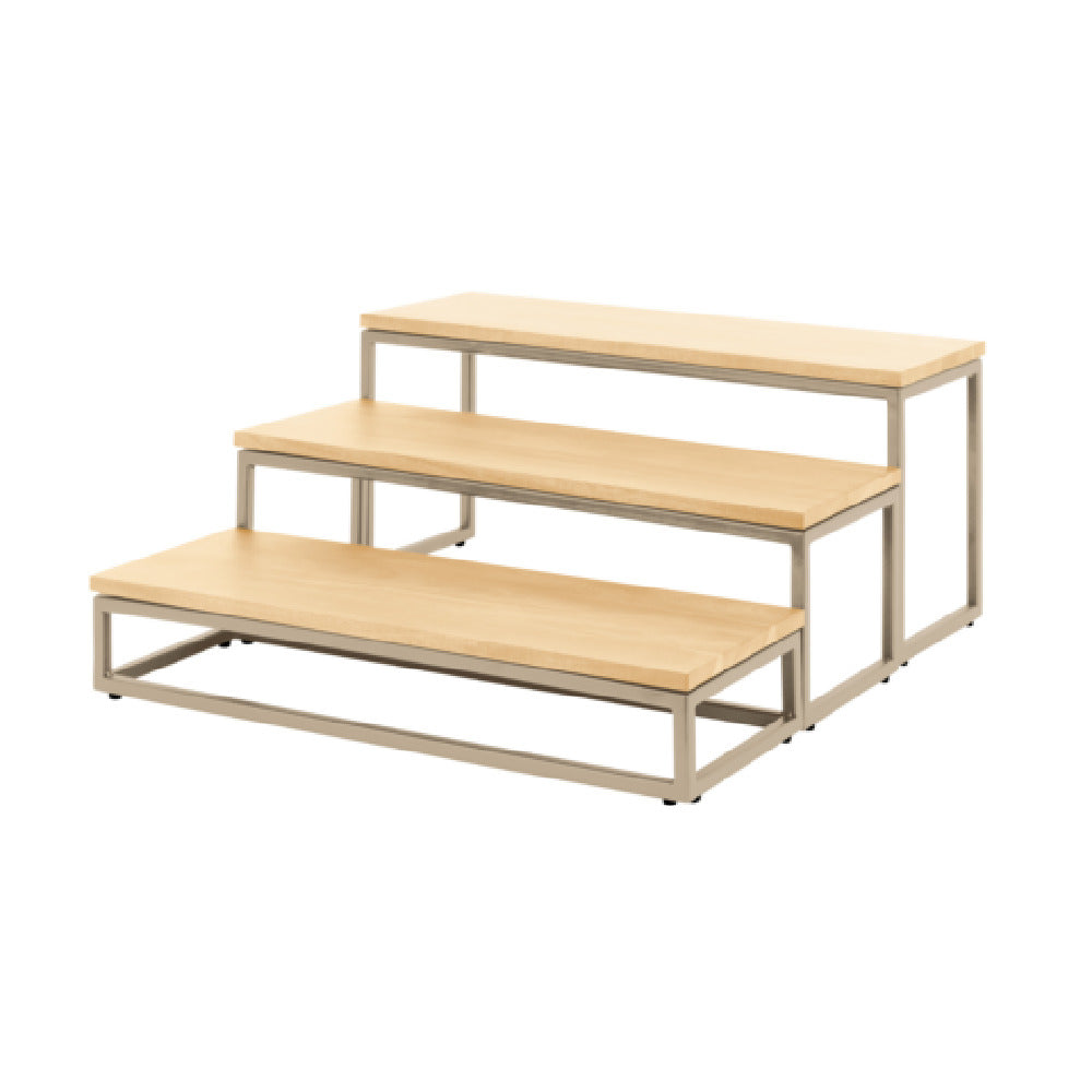 The Steelite 7364MW335 Riser 21-7/8" x 7 3/8" x 9" Rectangle is a uniquely designed metal riser from Steelite International, crafted with precision and aesthetic appeal. It features dimensions of 21-7/8 inches in length, 7 3/8 inches in width, and 9 inches in height, making it an optimal choice for elevating presentations in various professional settings. The riser is finished in a pivot champagne color, providing an elegant touch that complements its sturdy construction. This versatile piece is manufactured by DW Haber, known for producing high-quality metal products, ensuring durability and reliability in high-traffic environments. The Steelite 7364MW335 is stocked as a single item per case, emphasizing its exclusive availability for discerning buyers. Its unique rectangular shape caters to different segment markets, from hospitality to catering, offering a sophisticated platform to showcase culinary creations or decorative displays. The combination of its distinctive design and robust material makes this riser a valuable addition to any professional setting, enhancing the presentation and functionality of the space it occupies. With a minimum order quantity of one per case, it is tailored for those seeking a standout product that seamlessly integrates both form and function.