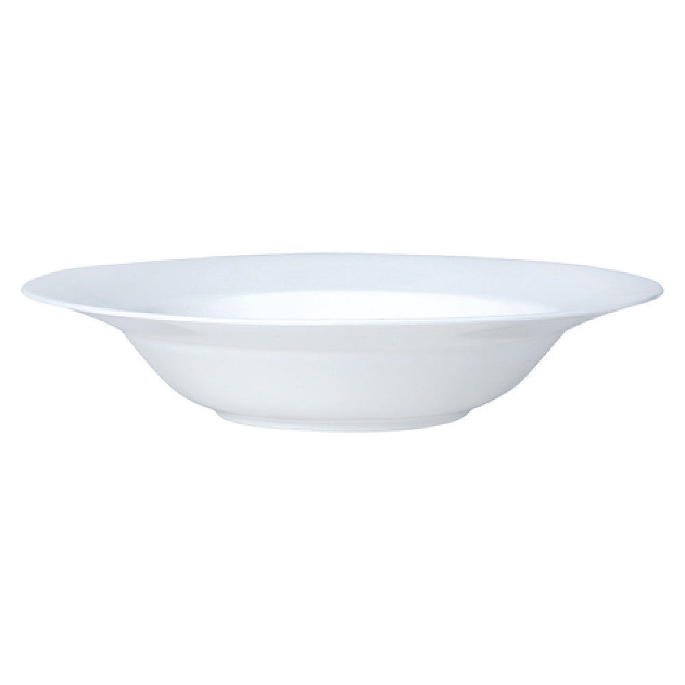 The Steelite 82000AND0132 Rim Bowl 21 Oz. 11" Dia. is a remarkable fusion of functionality and elegance, ideal for diverse market segments within the culinary industry. This large, round rim bowl is crafted from fine bone china, ensuring both durability and a sophisticated aesthetic. With a capacity of 21 ounces and a diameter of 11 inches, this bowl provides ample space for a variety of culinary presentations, from soups to salads and entrees, enhancing the dining experience in both casual and fine dining establishments. The Steelite 82000AND0132 represents the timeless design ethos of William Edwards, a name synonymous with classic whites and understated elegance. Each case contains six bowls, making it a practical choice for restaurants, catering services, and hospitality venues seeking both style and substance in their tableware. As a stock item, it promises both immediate availability and the assurance of consistent quality. The Steelite 82000AND0132 Rim Bowl is a versatile addition to any table setting, offering a perfect blend of form and function that complements a wide range of culinary styles and settings.