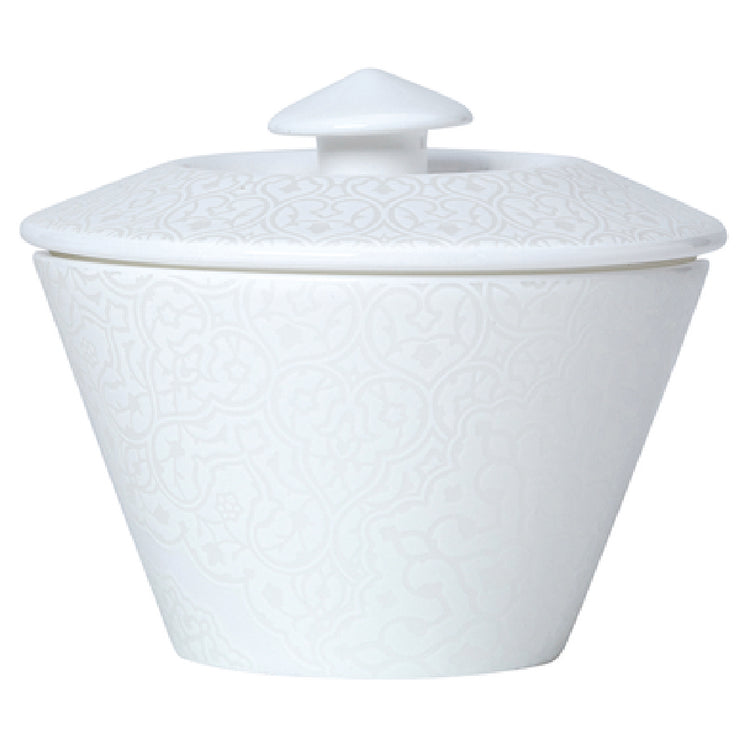 The Steelite 82110AND0519 Sugar Bowl - 7 oz. - 3-1/2"H exemplifies a harmonious blend of elegance and functionality, designed to enhance any table setting. Crafted from premium bone china, this round sugar bowl is part of the renowned William Edwards Moresque collection, ensuring a touch of sophisticated style. Its compact yet capacious 7 oz. volume makes it suitable for both intimate gatherings and larger catering events, effortlessly accommodating the sugar needs of diverse dining scenarios. The sugar bowl comes equipped with a perfectly fitting lid, maintaining the freshness of its contents while offering an aesthetically pleasing silhouette. As a non-stock item, it adds a unique touch to any culinary presentation, making it a valuable addition for high-end restaurants and hospitality businesses aiming to distinguish their service. Sold in packs of one dozen, it provides a practical option for establishments looking to maintain consistency in their tableware. The Steelite 82110AND0519 Sugar Bowl - embodying both quality and design - is an essential item for those who appreciate the intersection of practicality and art in dining experiences.