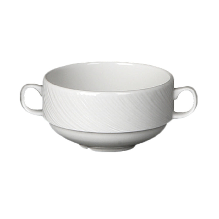 The Steelite 9032C735 Soup Cup 10 Oz. With Handle is a meticulously crafted piece designed to meet the demands of both casual and fine dining environments. Constructed under the esteemed Steelite Distinction range, this soup cup embodies the renowned Spyro design, offering an elegant yet functional dining solution. Its 10-ounce capacity makes it suitable for a variety of soups and broths, while the convenient handle ensures ease of use, enhancing the dining experience. Notably, the Steelite 9032C735 is stackable, a feature that is particularly valuable for establishments aiming to optimize storage space without compromising style or utility. Packed efficiently by 3 dozen per case, this soup cup ensures bulk availability while maintaining high-quality standards. The Steelite 9032C735 Soup Cup is a reliable choice for restaurants, hotels, and catering services seeking durable, elegant dinnerware that seamlessly combines form and function. Its design and practicality make it a versatile addition to any culinary setting, providing a balance of aesthetic appeal and practical utility for diverse market segments within the food service industry.