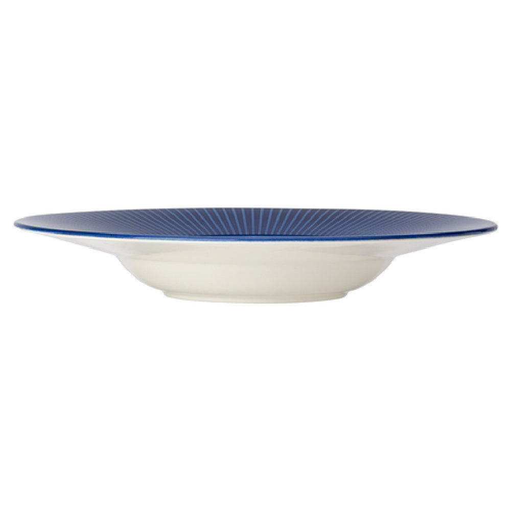 The Steelite 9115C1176 Gourmet Bowl is a meticulously crafted piece designed for both functionality and elegance, with a capacity of 10 oz. and dimensions of 11-1/4" in diameter and 1-3/4" in height. This round, deep, rimmed bowl embodies a fully vitrified construction, ensuring enhanced durability and resistance to chipping, supported by a lifetime edge chip warranty. The bowl's ceramic composition, in a striking azure color, adds a touch of sophistication, making it a distinctive choice for diverse culinary presentations. It is part of the Steelite Distinction collection, specifically the Willow Azure line, renowned for its aesthetic appeal and practicality. The bowl's fully glazed foot provides a smooth, non-abrasive finish, preventing scratching on tabletops and maintaining the bowl's integrity over time. Its versatility is further highlighted by its compatibility with freezer, microwave, and oven environments, catering to various food preparation and serving needs. Ideal for professional chefs, restaurateurs, and caterers seeking reliable and stylish tableware, the Steelite 9115C1176 Gourmet Bowl stands as a testament to quality and innovation, being a stock item available in sets of six, packed by the case, ensuring consistent availability for high-demand settings.