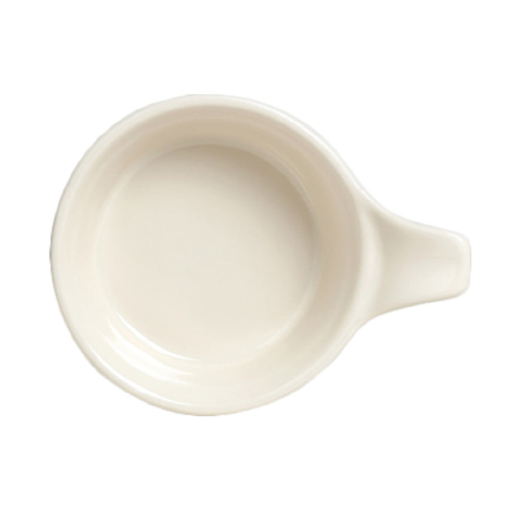 Steelite A100P010 Casserole/Tab Soup 11 Oz. 5-3/4" X 1-7/8" is a versatile dish that perfectly balances function and style, making it suitable for a variety of dining settings. This round casserole or tab soup dish holds an ample 11 oz. capacity, designed to meet the needs of both individual servings and larger culinary presentations. Measuring 5-3/4" in diameter and 1-7/8" in height, it features a 1-5/8" tab for easy handling. Its fully vitrified construction ensures maximum durability and resistance to chipping, making it an ideal choice for high-traffic establishments. The clear glaze finish not only adds an aesthetic touch but also provides an additional layer of protection, enhancing its longevity. Part of the Anfora collection under the American Basics line, this product is a stock item, available in bulk packaging of two dozen per case, catering to the demands of large-scale operations such as restaurants, hotels, and catering services. This Steelite dish is designed to seamlessly integrate into any table setting, combining practicality with a sleek, understated elegance that appeals to different segment markets within the industry, from casual dining to upscale events, while maintaining the high standards expected of professional-grade dinnerware.
