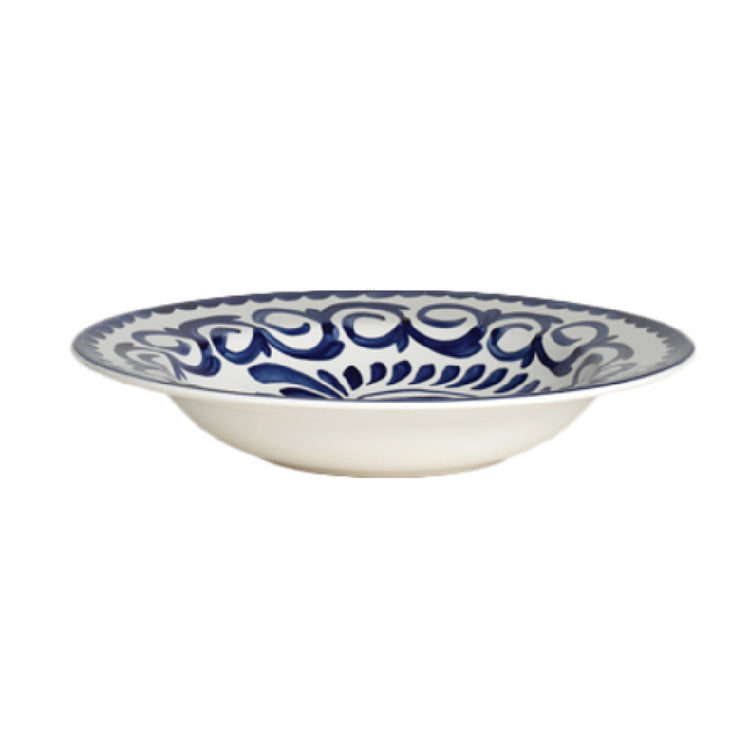 The Steelite A122P050 Pasta Bowl is a meticulously crafted piece of tableware, boasting a capacity of 26 ounces, perfectly designed to enhance your culinary presentation. With a diameter of 11-3/4 inches and a height of 2-1/4 inches, this round pasta bowl is expertly hand-painted, showcasing the artisanal craftsmanship of Puebla Brown. Manufactured by Steelite International, this bowl is made from fully vitrified china, ensuring durability and resistance to chipping. The Anfora collection signifies a rich tradition of quality and design, making this bowl an exquisite choice for both casual dining and upscale culinary experiences. As a non-stock item, it emphasizes exclusivity and is available with a minimum order of 300 pieces, catering to high-volume needs of the hospitality industry. Packed by the dozen, it provides convenience for bulk purchases. This pasta bowl is ideal for restaurants, hotels, and catering services that prioritize both aesthetic appeal and functional utility in their tableware selections. Its robust construction and elegant design make it a valuable addition to any establishment seeking to elevate their dining presentation with a piece that combines functionality with sophisticated style.