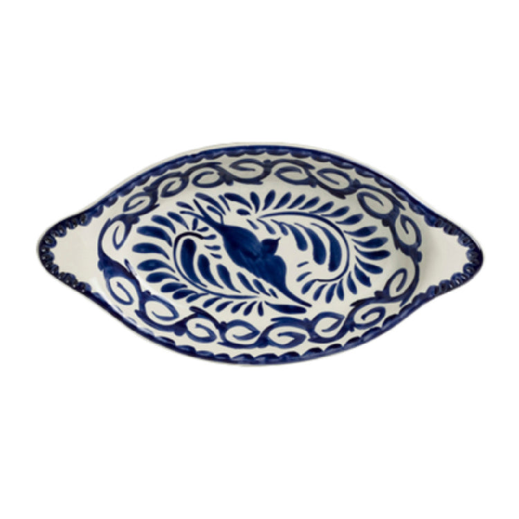 The Steelite A124P152 Rarebit 12 Oz. 10" X 5" is a distinctive piece of fully vitrified china crafted by Anfora, known for its durability and elegant design. This oval dish measures 10 inches by 5 inches and has a capacity of 12 ounces, making it an ideal serving solution for a variety of culinary applications. It features a unique hand-painted design, adding an artistic touch to any dining setting. The Puebla Palm design enhances its aesthetic appeal, offering a blend of traditional craftsmanship and modern dining sensibilities. As a non-stock item, it requires a minimum order of 300 pieces, packaged in batches of one dozen, making it particularly suited for large-scale operations in the hospitality industry, including restaurants, hotels, and catering services. The Steelite A124P152 is designed to withstand the rigors of professional kitchens while maintaining its visual appeal, providing a sophisticated option for presenting entrees, sides, or shared dishes. Its robust construction offers long-lasting performance, ensuring it meets the demands of high-volume establishments. This product embodies a perfect balance of functionality and style, making it a valuable addition to any culinary presentation.