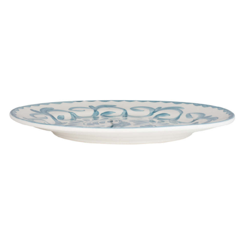 The Steelite A125P105 Chop Plate–13" dia.–round is a distinguished piece within the culinary industry, crafted for those who appreciate fine dining aesthetics and functionality. This chop plate, with a generous diameter of 13 inches, is meticulously hand-painted, showcasing the artistry and craftsmanship synonymous with Steelite International's Anfora collection. Constructed from fully vitrified china, it guarantees durability and resistance to chipping, perfect for high-demand environments. The elegant Puebla Lagoon design adds a touch of sophistication, making it ideal for upscale restaurants or high-end events. This particular piece is a non-stock item, emphasizing its exclusivity, with a minimum order requirement of 300 pieces, catering to bulk purchasers such as catering companies or large hospitality venues. Each order is conveniently packed by the dozen, ensuring ease in logistics and inventory management. Whether enhancing the visual appeal of a meal presentation or supporting the operational efficiency of large-scale dining services, the Steelite A125P105 Chop Plate combines aesthetic appeal with practical design, making it a versatile choice for various market segments within the foodservice industry.