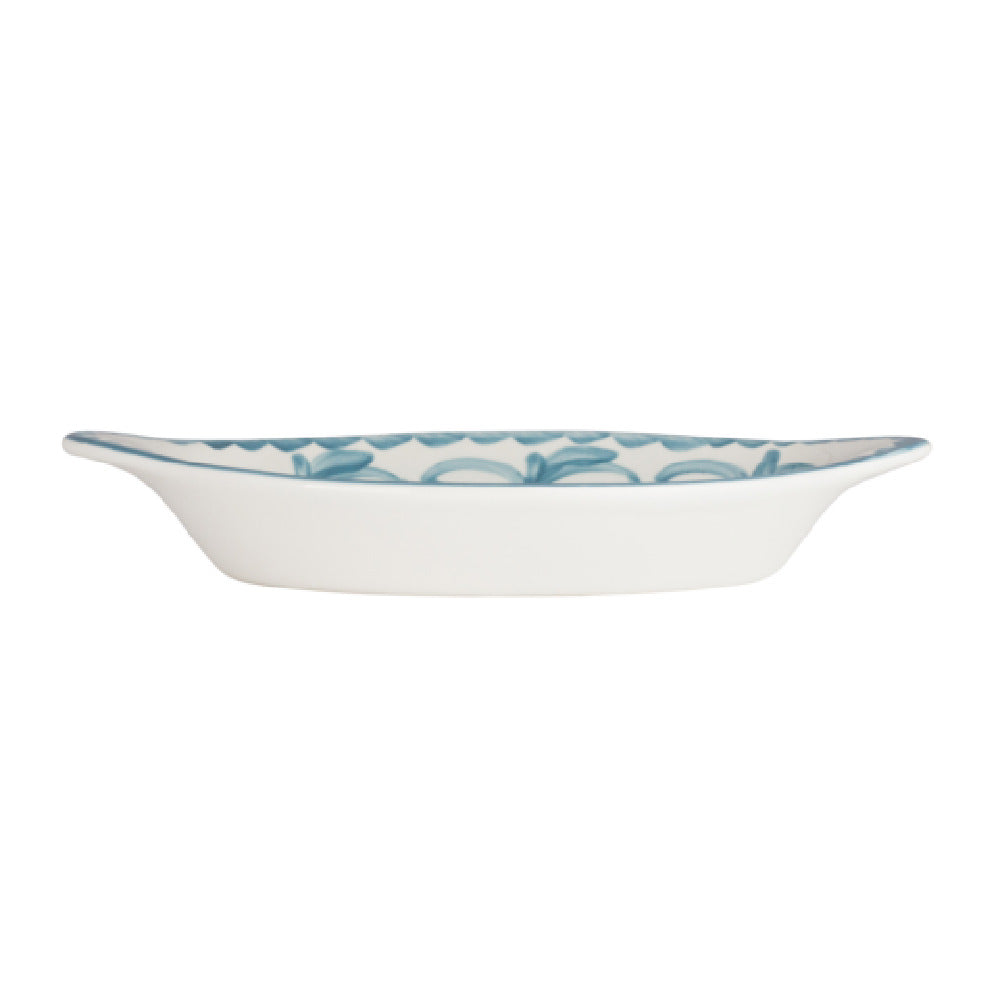 The Steelite A125P152 Rarebit 12 Oz. 10" X 5" is a distinctive piece of serveware that combines functionality and elegance, catering to various segments within the hospitality industry. This 12-ounce oval dish, measuring 10 inches by 5 inches, is crafted from hand-painted, fully vitrified china, ensuring durability and aesthetic appeal. Manufactured by Anfora, it features the striking Puebla Lagoon design, adding a unique visual touch to any dining setting. The vitrification process enhances the dish's resistance to water absorption, making it an excellent choice for commercial foodservice applications where longevity and hygiene are paramount. As a non-stock item with a minimum order requirement of 300 pieces, it is ideal for large-scale operations such as hotels, restaurants, and catering services that prioritize both style and performance in their tableware selection. Each order is conveniently packed by the dozen, facilitating efficient storage and inventory management. This rarebit dish stands out as a versatile solution for serving a variety of culinary creations, embodying a blend of traditional craftsmanship and modern efficiency that meets the demands of diverse dining environments. Its robust construction and elegant design make the Steelite A125P152 Rarebit a valuable addition to any professional kitchen or dining establishment.