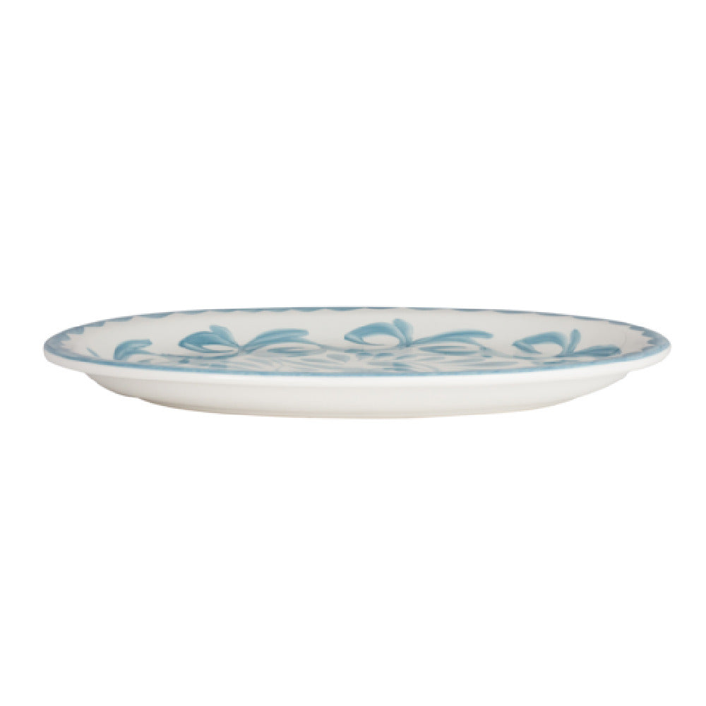 - Oval 13-5/8" x 10-3/4" platter with narrow rim