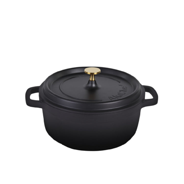 Steelite International, AP240011G, Casserole Dish with Gold Knob, 4.5 qt, 10.63" x 10.63" x 4.92", Round, Mixed Materials, Matte Black, Aluchef (minimum = case quantity, 4 each per case) (STOCK item) (Packed By: Cs)