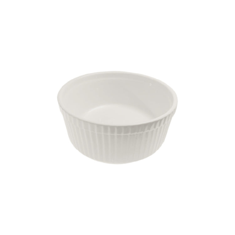 The Steelite DCI13DW Ramekin is a 5-ounce, fully vitrified ceramic dish, featuring a round shape with a diameter of 3-5/8 inches and a height of 1-5/8 inches. This ramekin's design includes a rolled edge and fluted sides, contributing to its versatility and aesthetic appeal. It is crafted from lead-free ceramic, ensuring safety and durability for culinary applications. The Steelite DCI13DW Ramekin is both oven and microwave safe, making it a practical choice for professional kitchens that require reliable and multifunctional serviceware. Available in classic white, this ramekin complements a wide range of table settings and culinary presentations, enhancing the dining experience across various market segments such as fine dining restaurants, hospitality, catering services, and home kitchens. The product is a stock item, conveniently packed by 2 dozen per case, streamlining inventory and distribution processes for businesses of all scales. Its robust construction and elegant design make the Steelite DCI13DW Ramekin an essential item for chefs and food service professionals seeking quality and style in their serveware.