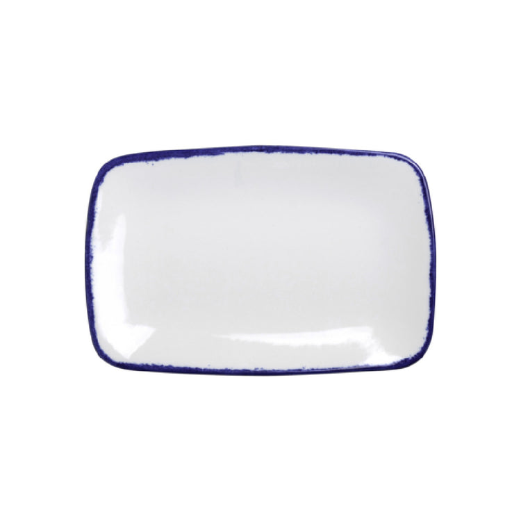The Steelite DCI896CBDUW Platter - 9-1/2"L x 6-1/4"W x 7/8"H Rectangle is a versatile and durable serving solution, perfect for various market segments within the hospitality and food service industries. Crafted from fully vitrified ceramic, this platter offers exceptional strength and resilience, making it suitable for both high-volume commercial use and elegant dining settings. Its lead-free composition ensures safety and peace of mind for both operators and guests. The platter's dimensions - 9-1/2 inches in length, 6-1/4 inches in width, and 7/8 inches in height - provide ample space for presenting an array of culinary creations, from appetizers to desserts. This model is oven and microwave safe, adding versatility to its thermal capabilities, and allowing for seamless transitions from preparation to table service. The striking Cobalt Blue Dapple and Ultra White color scheme not only enhances the visual appeal of your presentations but also complements a wide range of table settings and décor styles. Additionally, this product is a stock item, packaged efficiently with 2 dozen per case, making it an economical and practical choice for large-scale operations. The Steelite DCI896CBDUW Platter is an exemplary blend of functionality, durability, and aesthetic appeal, tailored to meet the diverse needs of the industry.
