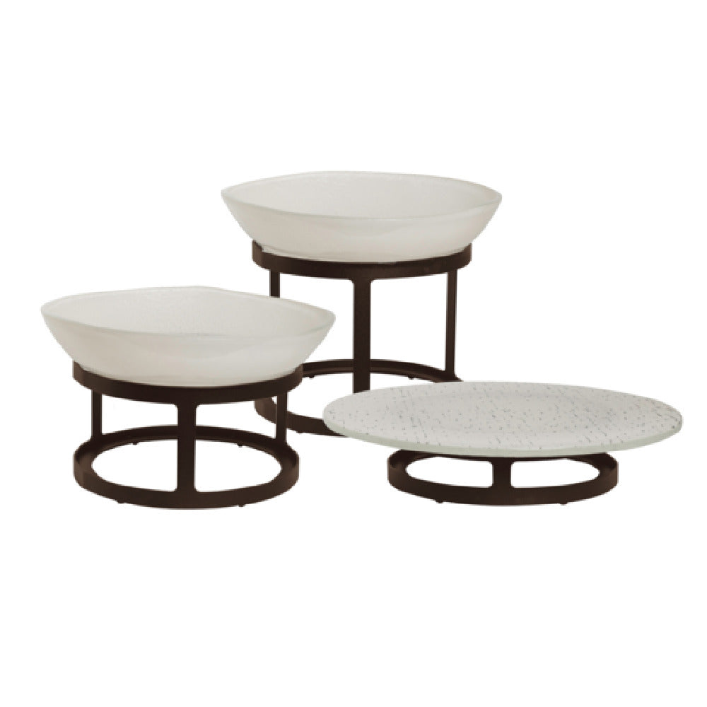 The Steelite GS196673 Display Riser 8.375" Round is a high-quality stainless steel product designed by My Glass Studio, distinguished by its elegant bronze finish. This round riser is crafted to elevate presentation in various industry segments, from fine dining establishments to catering services, where visual appeal and durability are paramount. Measuring at 8.375 inches in diameter, the riser offers an ideal platform for showcasing culinary creations, enhancing the aesthetic appeal of any displayed items. Its robust stainless steel construction ensures longevity and resistance to corrosion, making it suitable for both indoor and outdoor events. The GS196673 is not only a stock item but also reflects Steelite International's commitment to quality and design excellence. This riser is packed individually, ensuring that each unit reaches its destination in pristine condition, ready to add sophistication and functionality to any display setting. With its combination of stylish design, practical dimensions, and durable materials, the Steelite GS196673 Display Riser is an invaluable asset for professionals seeking to enhance their service presentation, ensuring that displayed items are showcased to their fullest potential. This product is a testament to the craftsmanship and innovation synonymous with Steelite International's offerings in the market.