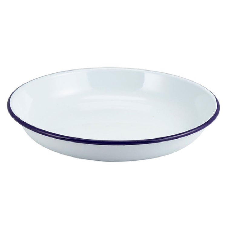 The Steelite GW45624 Rice/Pasta Plate 9-1/2" Dia x 1-1/2"H Round is a versatile piece of tableware designed for both commercial and residential dining environments. With a diameter of 9-1/2 inches and a height of 1-1/2 inches, this round plate is ideal for serving a variety of rice and pasta dishes. It is constructed from durable enamelware, ensuring robustness and longevity, and features a classic white interior accented by a stylish blue rim. This combination not only adds a touch of elegance to any table setting but also enhances the presentation of the dishes served. The Steelite GW45624 plate is both dishwasher and oven safe, offering convenience and practicality for busy kitchens. As part of the Genware London line, this plate is synonymous with quality and aesthetic appeal, making it a favored choice among restaurateurs and catering professionals. Packed by 1 dozen, this stock item facilitates bulk purchasing for larger establishments. The Steelite GW45624 Rice/Pasta Plate is a valued asset across various segments of the food service industry, including restaurants, catering services, and hospitality venues, where durability, functionality, and timeless design are paramount.