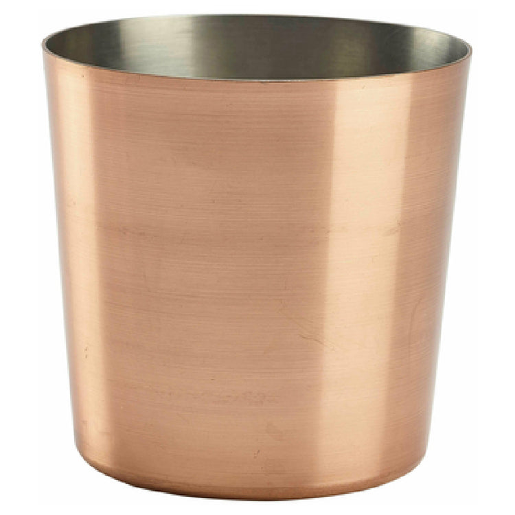 The Steelite GWSVC8C Serving Cup is a versatile and stylish choice for both professional and home settings, offering a capacity of 12-3/4 oz. Its precise dimensions of 3-3/8" diameter and 3-3/8" height present a balanced and ergonomic design, making it suitable for serving a variety of dishes and beverages. Crafted from high-quality stainless steel, this serving cup boasts a sophisticated copper finish, providing a blend of durability and elegance that enhances any table presentation. Part of the Genware London collection, the GW Copper finish adds a distinctive touch that appeals to upscale dining environments seeking to elevate their visual aesthetic. Available as a stock item, the Steelite GWSVC8C is packed by 2 dozen per case, ensuring convenience for bulk purchasing and inventory management, which is ideal for restaurants, catering services, and hospitality venues. Its robust construction not only supports frequent use but also withstands the rigors of a commercial kitchen setting, offering a reliable solution for serving needs that demand both function and form. This serving cup is an excellent choice for industry segments focused on creating memorable dining experiences through high-quality presentation and durable serving ware.
