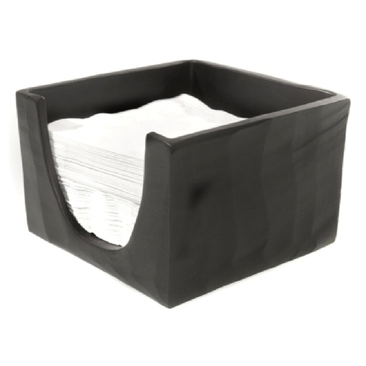 The Steelite KMK1010ES Beverage Napkin Holder is a meticulously crafted accessory, measuring 6 inches in length, 6 inches in width, and 4 inches in height, with a square design. This holder is distinguished by its carved detailing and is made from durable resin, contributing to its break-resistant properties. The espresso finish adds a touch of elegance and sophistication, making it a perfect fit for upscale dining settings or casual coffee breaks. Designed by Kenny Mack as part of the Coffee Break collection, this holder is specifically tailored for holding beverage napkins efficiently in various hospitality environments. The Steelite KMK1010ES is dishwasher safe, ensuring ease of maintenance and hygiene, a necessity in fast-paced commercial settings. Each case contains two of these napkin holders, providing practical value for restaurants, cafes, and catering services that require reliable table accessories. As a stock item, it is readily available, ensuring that businesses can meet their operational needs without delay. This beverage napkin holder combines aesthetic appeal with functional durability, making it a versatile choice for professionals seeking quality products to enhance their service and presentation in the hospitality industry.