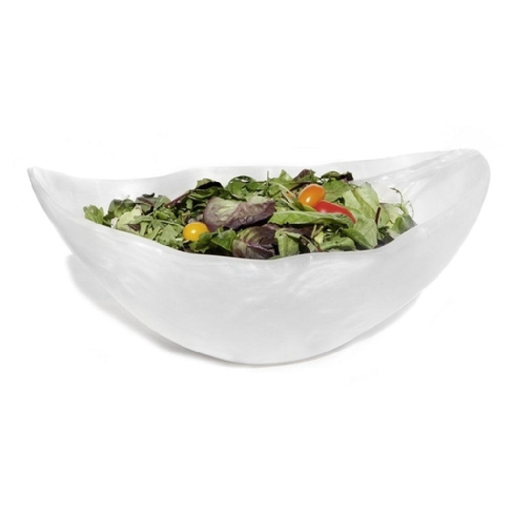 The Steelite KMK2021SH Bowl is a distinctive oval serving vessel, measuring 19"L x 11-1/2"W x 8"H, making it a substantial choice for various culinary presentations. Constructed from resilient resin material, this bowl is engineered to be break resistant, ensuring durability in high-traffic environments such as restaurants and catering services. Its unique shell design is attributed to renowned designer Kenny Mack, whose aesthetic sensibilities are reflected in the Wave pattern, adding a touch of sophistication to its appearance. The bowl's dishwasher-safe attribute underscores its practicality, allowing for easy maintenance and hygiene in busy kitchen settings. As a stock item from Steelite International, the KMK2021SH bowl is available for individual purchase, offering flexibility for businesses needing to replace or expand their existing serveware. This product stands out in the market for its combination of aesthetic appeal, functionality, and durability, making it a versatile piece suited for both casual dining and upscale events, while meeting the rigorous demands of the food service industry.