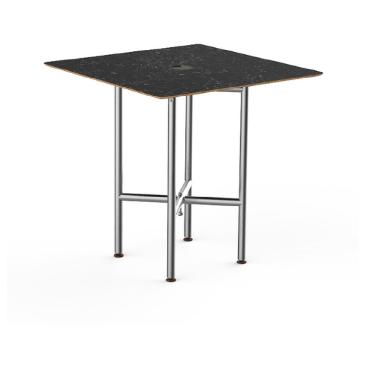 The Steelite MGCCVS01MSXX Mogogo Buffet Solutions Clix Table 30" X 30"H Square is a versatile and sophisticated addition to any food service establishment, catering to a wide range of industry segments. This elegantly designed table features a 30-inch by 30-inch height with a square shape, providing ample surface area for buffet presentations. The table's top is crafted from Nero Marquina marble BHP high-pressure laminate, integrated with a bamboo core, which ensures durability and an exquisite aesthetic appeal. This combination of materials not only offers a visually striking appearance but also promises long-lasting performance and resistance to wear. The table is supported by brushed stainless steel segments, enhancing its stability and adding a touch of modern elegance. Packaged as one complete unit, the Steelite MGCCVS01MSXX is ideal for upscale dining environments, catering events, and hospitality settings where style and functionality are paramount. Its high-quality construction and thoughtful design make it a valuable asset for any professional seeking to elevate their buffet presentation and dining experience with a blend of contemporary style and practical features.