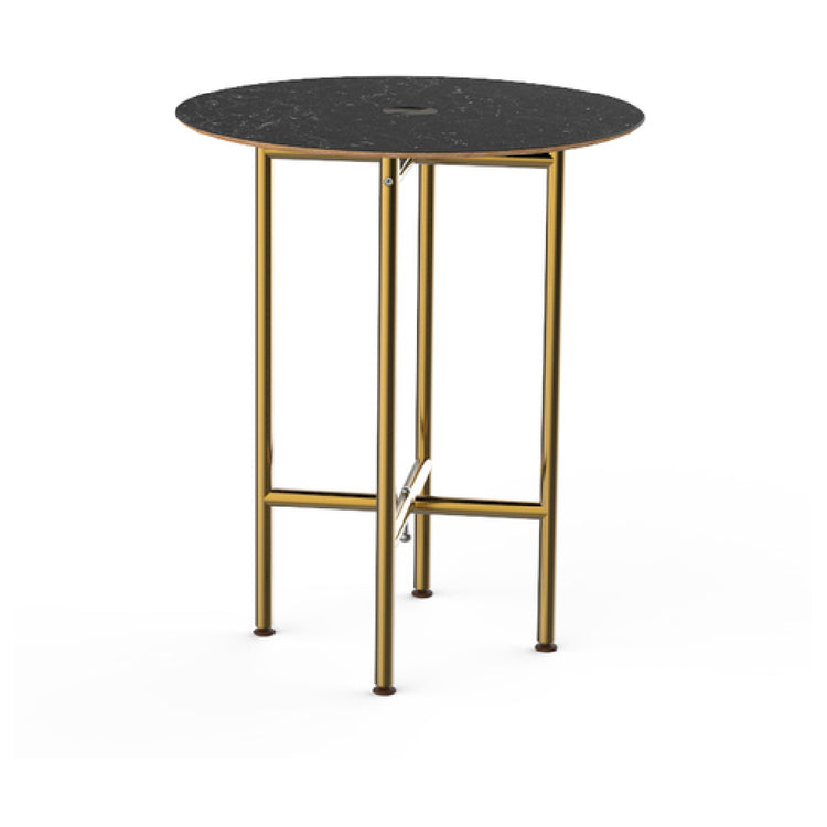 The Steelite MGCCYR01MBXX Mogogo Buffet Solutions Clix Table is a meticulously designed piece, engineered to meet the demands of various market segments within the hospitality industry. This round table, with dimensions of 30 inches in diameter and 36 inches in height, is crafted with a Nero Marquina marble BHP high-pressure laminate top, offering a sophisticated aesthetic while ensuring durability. The bamboo core integrates sustainability with strength, making it a reliable choice for high-traffic areas. The unique design is accentuated by brushed brass segments, providing an elegant touch that fits seamlessly into upscale dining environments. Packed by one each, the table is not just a utilitarian surface but a statement piece that elevates the ambiance of any event space. Ideal for buffets, banquets, or catering events, its construction supports easy assembly and disassembly, catering to the dynamic needs of the hospitality sector. The Mogogo Buffet Solutions Clix Table stands out as a versatile and stylish option, marrying form and function for those seeking to enhance their dining settings with premium quality and design excellence.