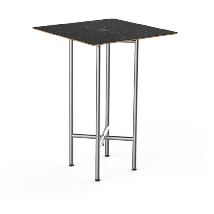 The Steelite MGCCZS01MSXX Mogogo Buffet Solutions Clix Table is a meticulously designed piece that blends functionality and elegance, making it a standout choice for hospitality settings. This square table measures 30 inches across and stands at a height of 42 inches, offering a versatile surface for a variety of dining and buffet applications. The table boasts a Nero Marquina marble BHP high-pressure laminate top, renowned for its durability and sophisticated appearance, while the bamboo core provides an eco-friendly foundation, enhancing its sustainability credentials. The brushed stainless steel segments not only contribute to the table's sleek aesthetic but also ensure strength and longevity, making it suitable for high-traffic environments. This table is packed individually, ensuring that it arrives in pristine condition, ready to elevate any space. The Steelite MGCCZS01MSXX is ideal for upscale restaurants, hotels, and event venues seeking to create an inviting yet practical dining experience. With its combination of premium materials and thoughtful design, this table stands as a testament to Steelite's commitment to quality and innovation in furniture solutions.