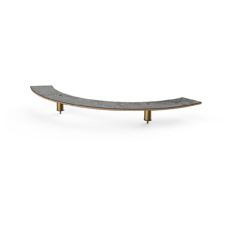 The Steelite MGCIAF01GBXX Mogogo Buffet Solutions Modular Outer Extension Shelf is a precision-engineered piece, measuring 76 inches in length, 27-1/2 inches in width, and 6-1/2 inches in height. This half-round extension shelf is notable for its grey slate BHP high-pressure laminate surface, which is complemented by a robust bamboo core top. The shelf features brushed brass legs, adding both aesthetic appeal and durability to its design. It is packed individually, ensuring that each unit arrives in pristine condition. This product is particularly valuable for hospitality environments, providing a versatile and stylish solution for buffet presentations. Its modular nature allows it to seamlessly integrate into existing buffet setups, offering expanded surface area and enhanced functionality. The combination of materials not only delivers a striking visual contrast but also ensures strength and longevity, making it a strategic investment for venues looking to enhance their dining experience. This extension shelf is ideal for hotels, restaurants, and catering services that prioritize both form and function in their buffet setups.
