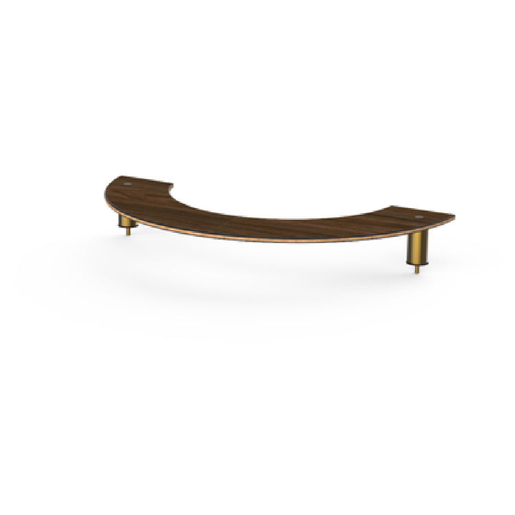 The Steelite MGCIAF02WBXX Mogogo Buffet Solutions Modular Inner Extension Shelf is a versatile addition to any buffet setup, measuring at 53 inches in length, 26-1/2 inches in width, and standing 6-1/2 inches tall. This half-round shelf is crafted with a Bengali mango wood BHP high-pressure laminate featuring a bamboo core top, which provides a sturdy and aesthetically pleasing surface. The brushed brass legs not only add an elegant touch but also ensure stability and durability, making it suitable for high-traffic environments. This modular shelf is designed to seamlessly integrate into various buffet configurations, offering an adaptable solution for catering, hospitality, and event settings. Its unique combination of materials and design makes it a standout choice for those looking to enhance their presentation with both functionality and style. The Steelite MGCIAF02WBXX is packaged as a single unit, ensuring that you receive a complete and ready-to-use product. It is ideal for businesses seeking to optimize their serving space while maintaining a chic and modern appearance, catering to a range of market segments within the food service industry. This well-engineered product underscores Steelite International's commitment to quality and innovative design.