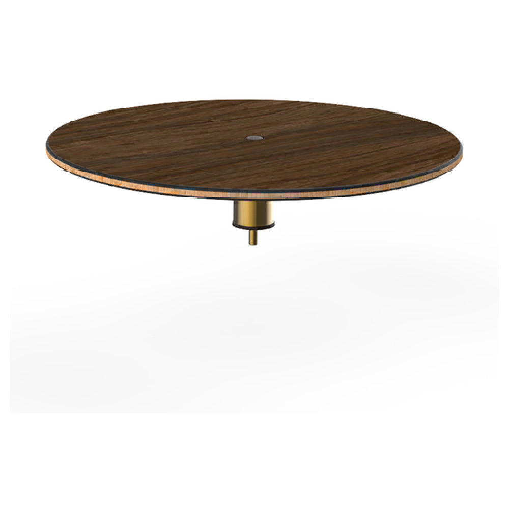 The Steelite MGCIAY04WBXX Mogogo Buffet Solutions Modular Display Shelf is a meticulously designed piece, boasting a 30-inch diameter and a height of 6-1/2 inches, tailored for efficient and elegant buffet presentations. This low, round shelf combines functionality with aesthetic appeal, utilizing Bengali mango wood BHP high-pressure laminate, topped with a bamboo core. The unique choice of materials not only offers durability but also introduces an organic touch to any display setting, making it particularly valuable for venues aiming to integrate natural elements into their decor. The brushed brass segment adds a sophisticated accent, enhancing the visual appeal and making it suitable for upscale events. This product is highly adaptable, serving various market segments within the foodservice industry, including hotels, event planners, and catering services, seeking modularity and style in their buffet setups. Packed by one each, the Steelite MGCIAY04WBXX offers a sleek and practical solution for presenting culinary creations, reflecting an ideal blend of craftsmanship and contemporary design. Its modular nature allows for versatile configurations, enabling users to customize their display according to specific needs, ensuring that it aligns seamlessly with diverse thematic and functional requirements.