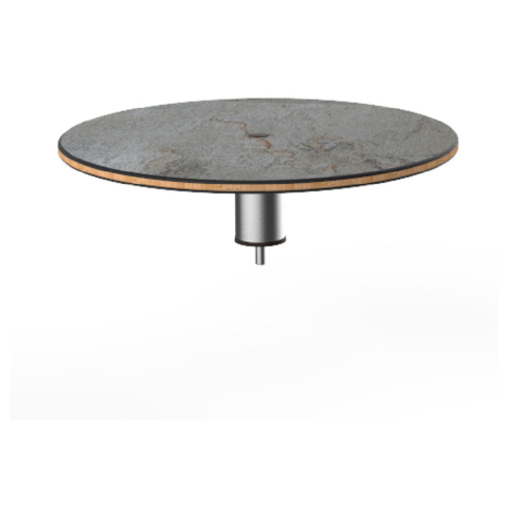 The Steelite MGCIAY05GSXX Mogogo Buffet Solutions Modular Display Shelf is a versatile display solution meticulously crafted for the hospitality and catering industries. This modular shelf boasts a 24-inch diameter and a height of 6-1/2 inches, providing ample surface area for a variety of display needs. The low, round design enhances its functionality by offering a stable platform while maintaining aesthetic appeal. Constructed with a gray slate BHP high-pressure laminate, the shelf features a bamboo core top that ensures durability and a sophisticated appearance. The brushed stainless steel segment adds a modern touch, enhancing its visual appeal and making it suitable for upscale venues. This product is packed individually, ensuring that each unit arrives in pristine condition. The Steelite MGCIAY05GSXX is an ideal choice for those looking to elevate their buffet presentations with a blend of style and substance, making it a valuable asset for caterers, event planners, and hospitality professionals seeking quality and elegance in their display solutions.