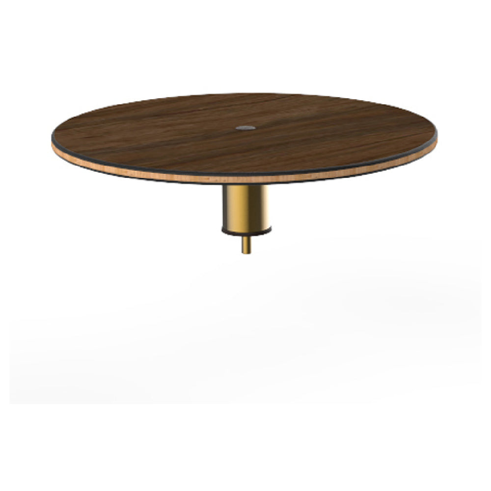 The Steelite MGCIAY05WBXX Mogogo Buffet Solutions Modular Display Shelf 24" Dia. X 6-1/2"H is an expertly crafted piece designed for versatility and elegance in food presentation. This low, round display shelf is meticulously constructed from Bengali mango wood BHP high-pressure laminate, which is enhanced with a bamboo core top, providing a unique aesthetic appeal and robust durability. The shelf features a brushed brass segment, adding a touch of sophistication that distinguishes it in various culinary environments. Measuring 24 inches in diameter and standing at a height of 6-1/2 inches, this display shelf is ideally suited for buffet settings, offering an elevated platform to showcase culinary creations with style. Its modular design facilitates flexible configurations, catering to diverse presentation needs within the hospitality industry, including hotels, catering services, and event planners. The Steelite MGCIAY05WBXX Mogogo Buffet Solutions Modular Display Shelf is packed individually, ensuring that each unit arrives in pristine condition, ready to enhance any dining experience with its refined construction and aesthetic appeal.