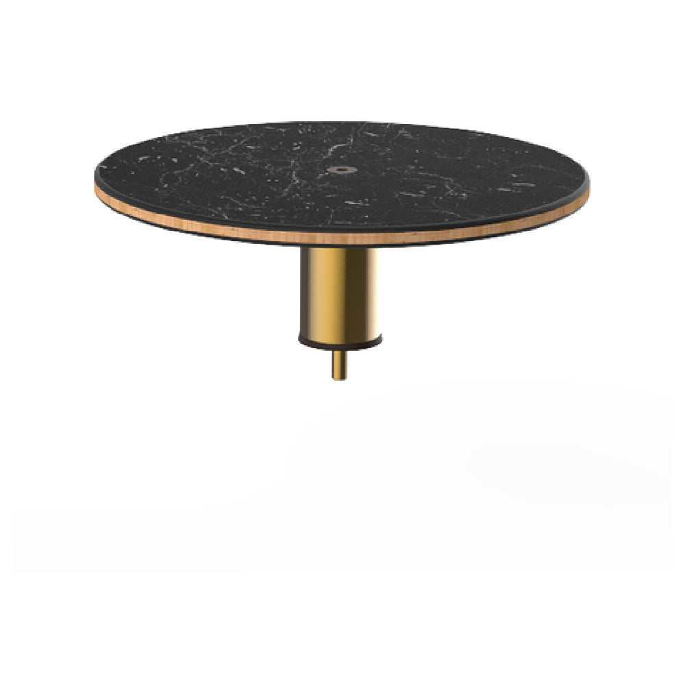 The Steelite MGCIAY06MBXX Mogogo Buffet Solutions Modular Display Shelf is an expertly crafted piece designed to enhance buffet presentations across various industries. This low, round display shelf measures 18 inches in diameter and stands 6-1/2 inches high, making it an ideal choice for showcasing culinary creations in a sophisticated manner. The shelf features a Nero Marquina marble BHP high-pressure laminate with a bamboo core top, providing a striking visual appeal combined with durability. Complementing its design is a brushed brass segment, adding a touch of elegance and refinement. This modular display shelf is perfect for catering services, hotels, and event venues seeking to elevate their buffet presentations with a stylish and functional solution. Its robust construction ensures longevity, while the luxurious materials used in its design make it an attractive centerpiece that can seamlessly fit into any upscale dining environment. The Steelite MGCIAY06MBXX is packaged individually, ensuring that it arrives in pristine condition ready to serve the diverse needs of its users.