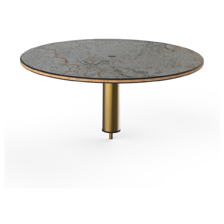 The Steelite MGCIAY07GBXX Mogogo Buffet Solutions Modular High Display Shelf is a versatile and elegantly designed display solution, perfect for enhancing the presentation of food in various hospitality settings. With a diameter of 30 inches and a height of 12-1/2 inches, this round display shelf offers ample space for showcasing an array of culinary delights. Its surface is crafted from gray slate BHP high-pressure laminate, providing a durable and aesthetically pleasing platform for food presentation. The inclusion of a bamboo core top not only adds to its strength but also brings a touch of natural elegance to the design. The brushed brass segment adds a sophisticated accent, making it suitable for upscale dining environments. This display shelf is packed individually, ensuring it reaches you in pristine condition. Whether used in a buffet setting or as part of a larger modular display, the Steelite MGCIAY07GBXX is engineered to meet the diverse needs of the food service industry, offering both functionality and style. Its robust construction and thoughtful design make it an ideal choice for hotels, restaurants, and catering services looking to elevate their food presentation with a high-quality, modular display solution.
