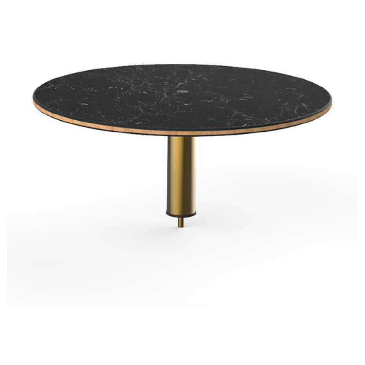 The Steelite MGCIAY07MBXX Mogogo Buffet Solutions Modular High Display Shelf is a meticulously crafted piece designed to enhance buffet presentations with style and functionality. Measuring 30 inches in diameter and standing 12-1/2 inches high, this round display shelf is an ideal choice for showcasing culinary creations. The shelf features a Nero Marquina marble BHP high pressure laminate top with a bamboo core, providing a sleek and durable surface that combines elegance with sustainability. The incorporation of a brushed brass segment adds a touch of sophistication, making it a standout piece in any buffet setup. This product is packed as a single unit, ensuring ease of transport and assembly. The Steelite Mogogo Buffet Solutions Modular High Display Shelf is particularly well-suited for hospitality environments, catering services, and event planning companies that demand high-quality and visually appealing presentation solutions. Its modular nature allows for flexible design configurations, catering to diverse needs across different market segments. The synergy of high-quality materials and thoughtful design elements makes this display shelf a versatile and valuable addition to upscale dining experiences, where both aesthetics and practicality are paramount.