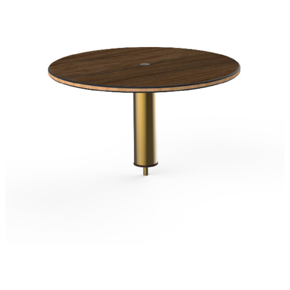 The Steelite MGCIAY08WBXX Mogogo Buffet Solutions Modular High Display Shelf 24" Dia.-12-1/2"H is a high-quality display unit tailored for upscale buffet presentations and hospitality environments. This round shelf features a robust 24-inch diameter and stands at 12-1/2 inches in height, providing an elevated platform for an engaging display of culinary offerings. Crafted with Bengali mango wood BHP high pressure laminate, it combines aesthetic appeal with durability, ensuring it withstands the rigors of frequent use. The bamboo core top adds an element of sustainability and strength, making it suitable for eco-conscious establishments. The brushed brass segment enhances its sophisticated look, making it a fitting choice for luxury hotels, event spaces, and catering services. Designed to seamlessly integrate into Mogogo Buffet Solutions' modular setups, this display shelf is packed in a single unit, ensuring easy assembly and transportation. By combining elegance with functionality, the Steelite MGCIAY08WBXX meets the diverse needs of professionals in the food service industry seeking to create visually appealing presentations without compromising on quality.