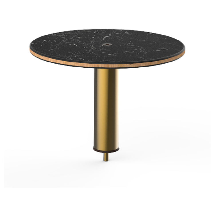 The Steelite MGCIAY09MBXX Mogogo Buffet Solutions Modular High Display Shelf is an innovative addition to any buffet setting, boasting an impressive 18-inch diameter and standing 12-1/2 inches high. This round display shelf is a fusion of elegance and durability, featuring a Nero Marquina marble BHP high-pressure laminate surface that is complemented by a bamboo core top. This combination not only provides a sophisticated appearance but also ensures robustness and longevity. The inclusion of a brushed brass segment adds a touch of luxury, making it suitable for high-end dining environments. The modular design allows for versatile use across various industry segments, from hospitality and catering to conference and event settings, where aesthetic presentation and efficient space use are paramount. Each unit is meticulously packed, ensuring it arrives in pristine condition, ready to enhance the visual appeal of any buffet layout. The Steelite MGCIAY09MBXX offers a unique blend of style and practicality, making it an essential component for professionals seeking to elevate their presentation standards with a high-quality display solution.