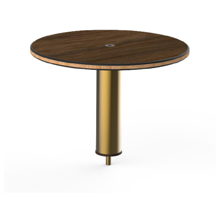 The Steelite MGCIAY09WBXX Mogogo Buffet Solutions Modular High Display Shelf 18" Dia. X 12-1/2"H is a versatile addition to any buffet setup, designed with both functionality and elegance in mind. This high display shelf features a round shape with a diameter of 18 inches and a height of 12-1/2 inches, providing ample space for showcasing a variety of dishes or decorative items. The shelf is constructed from high-quality Bengali mango wood BHP high pressure laminate, paired with a bamboo core top, ensuring durability and a sophisticated aesthetic. The inclusion of a brushed brass segment adds a touch of luxury, making it suitable for high-end events and upscale dining environments. Packed by one each, this modular shelf is designed to seamlessly integrate into the Mogogo Buffet Solutions range, offering flexibility and ease of use for caterers and event planners. The Steelite MGCIAY09WBXX is ideal for those seeking a stylish and practical solution for elevating their buffet presentation, and its robust materials ensure it can withstand the demands of frequent use in hospitality settings. This product stands out in its category for its blend of craftsmanship, design, and functionality, making it a valuable asset in the food service industry.