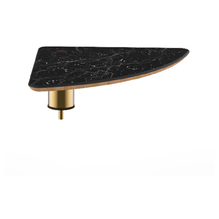 The Steelite MGCIAY10MBXX Mogogo Buffet Solutions Modular Display Shelf is an innovative and versatile piece designed to enhance buffet presentations across various hospitality sectors. Measuring 17 inches by 17 inches with a height of 6-1/2 inches, this display shelf is large, low, and uniquely triangular, providing a distinctive aesthetic. It features a Nero Marquina marble BHP high-pressure laminate top, which is complemented by a bamboo core, ensuring both durability and elegance. The brushed brass segment adds a touch of sophistication, making it suitable for upscale dining environments. This product is packed by 1 each, emphasizing its high-quality construction and focus on individual product excellence. Ideal for use in hotels, catering events, and restaurants, the Steelite MGCIAY10MBXX not only offers a practical solution for displaying food items but also elevates the visual appeal of any buffet setup. Its modular design allows for various configurations, making it adaptable to different space requirements and themes. The combination of materials used ensures that this display shelf is not only functional but also capable of withstanding the demands of high-traffic food service settings, making it a valuable asset for professionals seeking both style and durability in their display solutions.