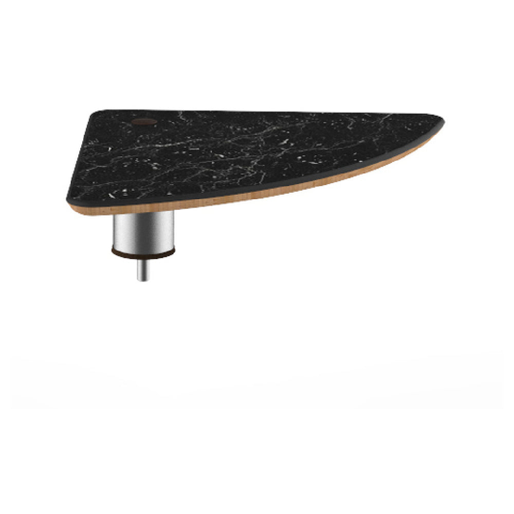 The Steelite MGCIAY10MSXX Mogogo Buffet Solutions Modular Display Shelf 17" X 17" X 6-1/2"H is a sophisticated modular display shelf designed for diverse hospitality environments where style meets functionality. This large, low-profile, triangular shelf is crafted with a Nero Marquina marble BHP high-pressure laminate, which is complemented by a bamboo core top for enhanced durability and aesthetic appeal. The brushed stainless steel segment lends a contemporary edge, making it a versatile choice for any buffet or catering setting. The dimensions of 17 inches by 17 inches and a height of 6-1/2 inches provide ample space for showcasing a range of culinary delights, ensuring that it meets the needs of various market segments, from high-end hotels to upscale event venues. This modular display shelf is packed as a single unit, emphasizing its quality construction and design integrity. Whether used as a standalone piece or part of a larger modular system, the MGCIAY10MSXX offers both practicality and elegance, catering to the evolving demands of the food service industry by providing a stylish and functional presentation solution.