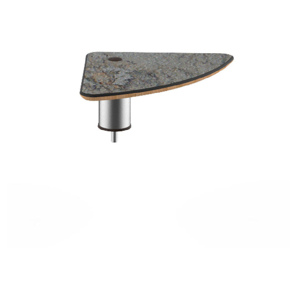 The Steelite MGCIAY11GSXX Mogogo Buffet Solutions Modular Display Shelf 14" X 14" X 6-1/2"H is a versatile addition to any buffet setup, designed to maximize presentation and functionality. Crafted with precision, this small, low, triangular shelf features a grey slate BHP high-pressure laminate surface, offering a sleek and durable platform for diverse display needs. The bamboo core top enhances its eco-friendly appeal while maintaining structural integrity. Complemented by a brushed stainless steel segment, this display shelf boasts a harmonious combination of materials that ensure longevity and aesthetic appeal. The dimensions, 14 inches by 14 inches by 6-1/2 inches high, are ideal for creating multi-tiered buffet displays, making it suitable for various service environments, from restaurants to catering events. Packed individually, it allows for easy storage and transport, further enhancing its utility in dynamic settings. This modular display shelf is part of Steelite's Mogogo Buffet Solutions, known for their innovative approach to buffet ware, providing professionals with adaptable tools to elevate their service presentation. With its meticulous design and high-quality materials, this display shelf serves as a robust foundation for showcasing culinary creations, appealing to the food service industry by combining practicality with an upscale look.