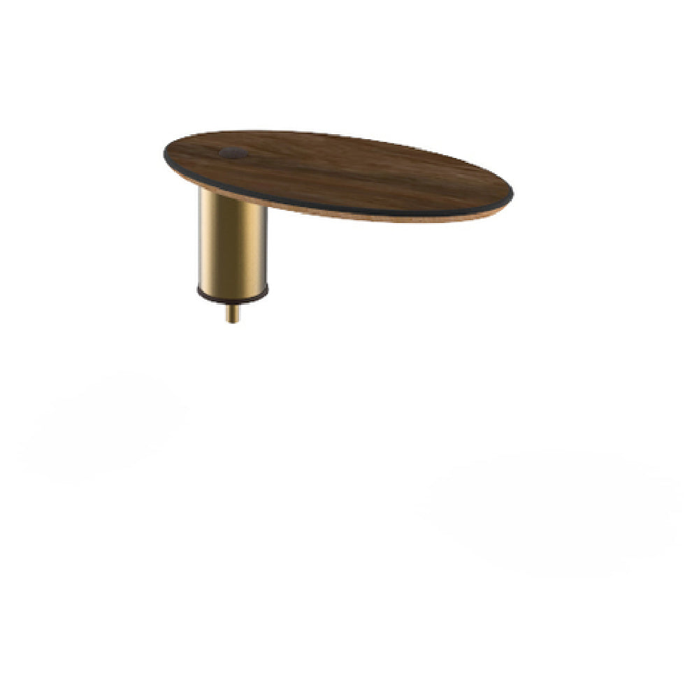 The Steelite MGCIAY15WBXX Mogogo Buffet Solutions Modular Display Shelf is a meticulously crafted display solution measuring 16 inches by 8 inches by 6-1/2 inches in height. This small, low, oval shelf is designed to enhance buffet presentations with its unique structural design. It features a top made of Bengali mango wood BHP low pressure laminate, which is elegantly complemented by a bamboo core, providing both durability and a visually appealing texture. The brushed brass segment adds a touch of sophistication, making it suitable for high-end dining environments. This modular shelf is part of the Mogogo Buffet Solutions line, known for its versatility and quality, making it a valuable asset for restaurants, hotels, and catering events. Its construction allows for easy integration into existing buffet setups, offering a flexible solution for display needs. Packed by each, the Steelite MGCIAY15WBXX shelf distinguishes itself with its unique combination of materials and thoughtful design, catering to the aesthetic and functional demands of the hospitality industry. The harmonious blend of materials and design elements makes it an ideal choice for those seeking to elevate their buffet presentation with a product that is as practical as it is stylish.