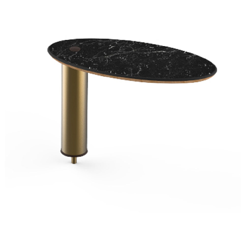 The Steelite MGCIAY16MBXX Mogogo Buffet Solutions Modular High Display Shelf is a meticulously designed piece, measuring 20 inches by 10 inches with a height of 12-1/2 inches. This large, oval display shelf is distinguished by its Nero Marquina marble BHP high-pressure laminate top, which incorporates a bamboo core, providing a unique combination of elegance and durability. The brushed brass segment adds a touch of sophistication, making it a standout choice for upscale buffet presentations. Ideal for catering professionals and hospitality venues, the modularity of this display shelf allows for flexible configuration, catering to various display needs and preferences. The blend of materials ensures not only aesthetic appeal but also longevity, catering to high-traffic environments where robustness is key. Packed individually, this product is crafted with attention to detail, making it a reliable asset in any professional setting looking to elevate their presentation with a touch of class.